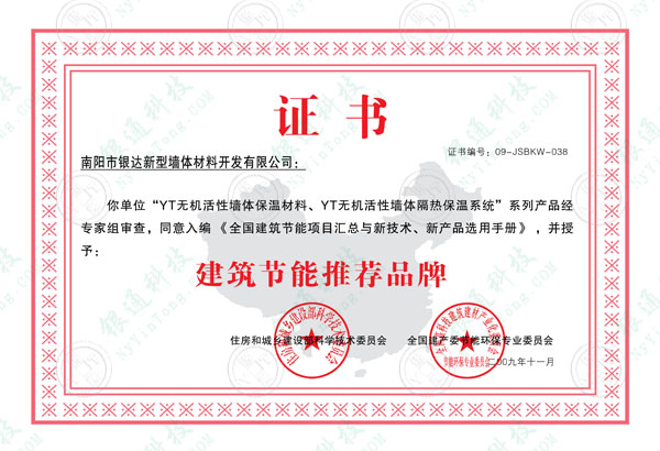建筑節能推薦品牌國家證書 建筑節能推薦品牌國家證書