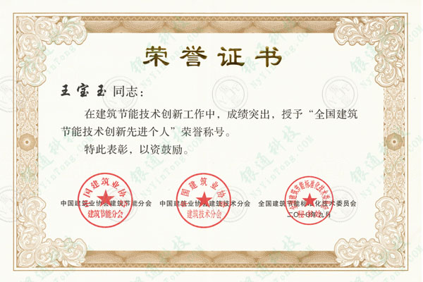 銀通集團王總獲全國建筑節能技術創新先進個人 南陽銀通王總獲全國建筑節能技術創新先進個人