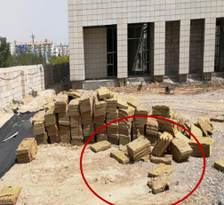 (7)建筑工程項目現(xiàn)場外保溫材料隨意堆放,也未做好外保溫材料的防護措施,嚴重影響外保溫材料的性能。