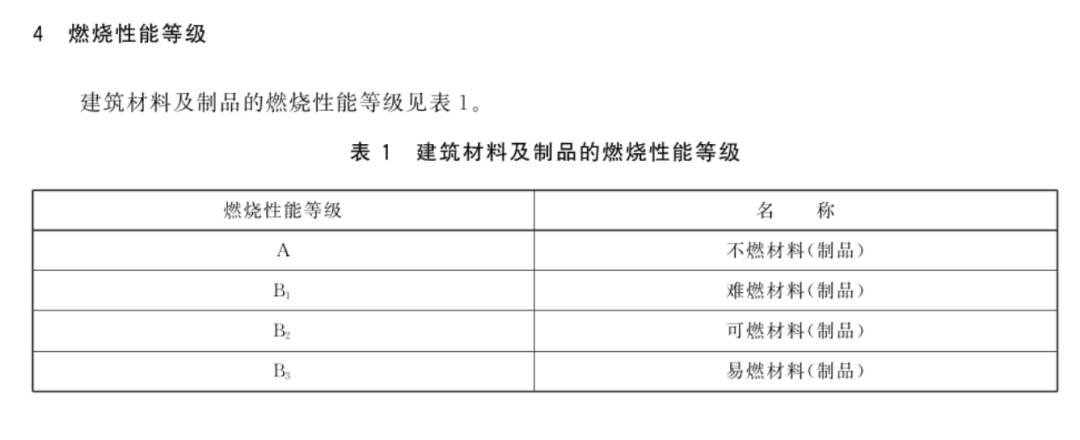 3、根據《建筑材料及制品燃燒性能分級》(GB8624-2012),將建筑材料及其制品的燃燒性能分為以下幾種等級: