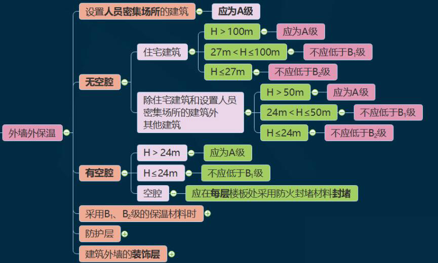 現(xiàn)在建筑外墻外保溫應(yīng)用較多,形式也更多樣,分為無空腔和有空腔。除了人密必須A級之外,其他建筑首先要看是有空腔,還是無空腔再來確定保溫材料的最低耐火等級。有空腔因為容易在空腔部位產(chǎn)生煙筒效應(yīng)更加危險,要求比無空腔也更加嚴(yán)格。