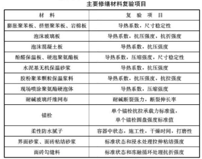 進場驗收+監理見證取樣復驗(修復面積合計≥1000㎡時)+外墻外保溫粘貼拉拔試驗(修復面積合計≥1000㎡時)+紅外熱工缺陷檢測