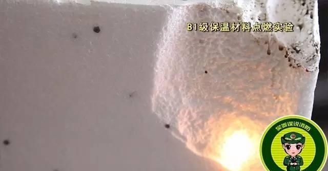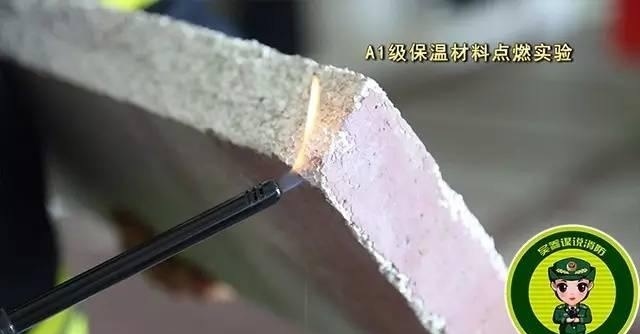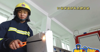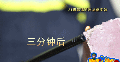 點燃A級保溫材料,保溫材料沒有出現一點要被點燃的跡象,持續三分鐘后,保溫材料依然沒有被點燃,但有顆粒狀物體掉落。