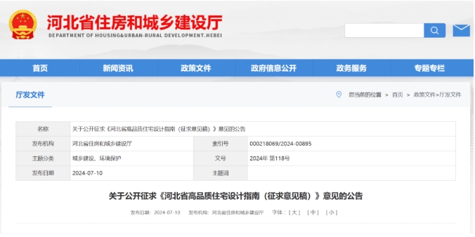 7月10日,河北省住建廳發布了《河北省高品質住宅設計指南(征求意見稿)》。