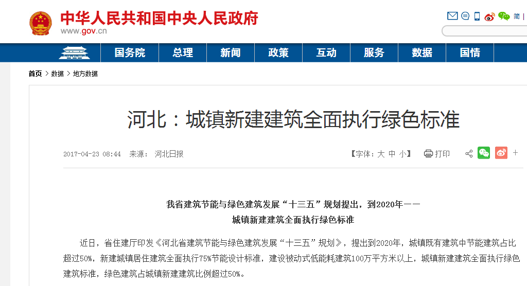 近日,省住建廳印發《河北省建筑節能與綠色建筑發展“十三五”規劃》,提出到2020年,城鎮既有建筑中節能建筑占比超過50%,新建城鎮居住建筑全面執行75%節能設計標準,建設被動式低能耗建筑100萬平方米以上,城鎮新建建筑全面執行綠色建筑標準,綠色建筑占城鎮新建建筑比例超過50%。